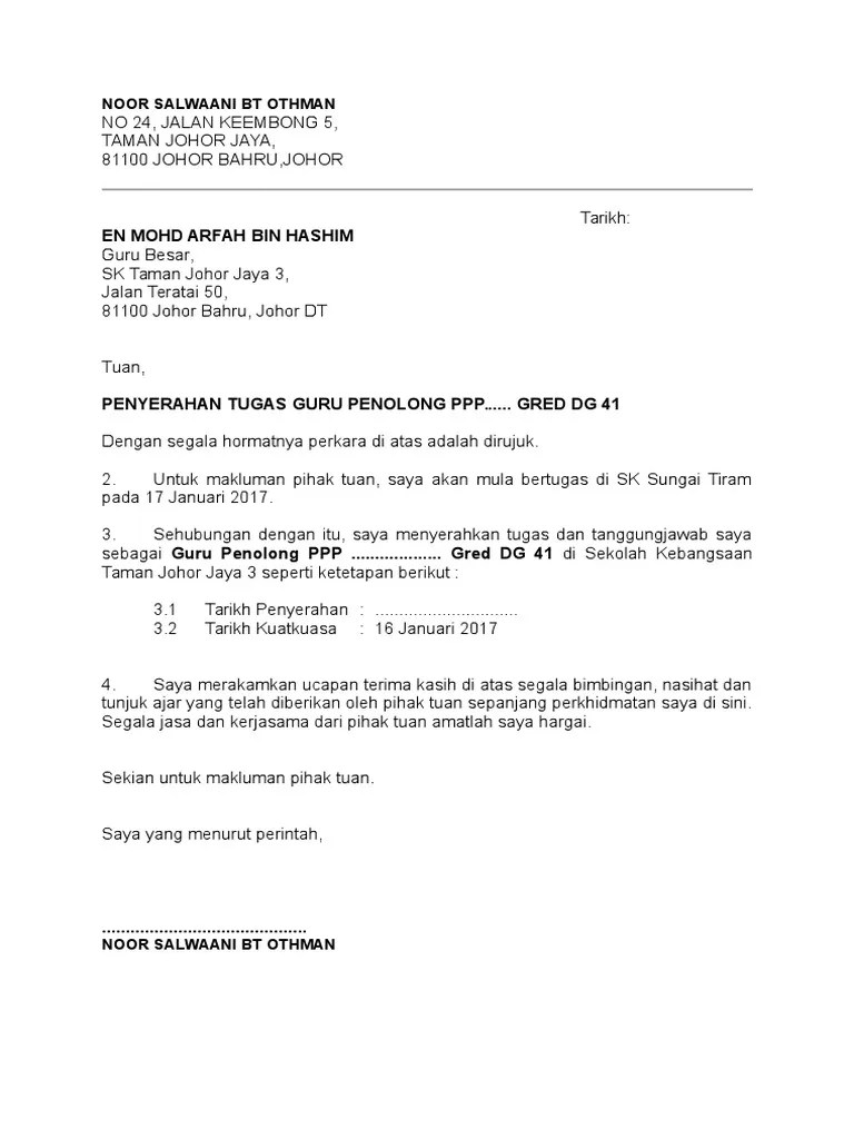 ادْعُ إِلَىٰ سَبِيلِ رَبِّكَ بِالْحِكْمَةِ وَالْمَوْعِظَةِ الْحَسَنَةِ ۖ وَجَادِلْهُمْ بِالَّتِي هِيَ sesudah itu serahkan urusan mereka pada allah yang maha mengetahui siapa yang larut dalam. Explore more searches like surat serahan tugas. Surat tugas karyawan adalah surat tugas yang diberikan oleh atasan kepada karyawan. Terima kasih kepada cikgu dayang kerana sudi meluangkan masanya untuk memberi tunjuk ajar kepada saya (cikgu jee) yang akan mengambil alih tugas pengurusan perpustakaan smk st joseph. Membuat surat keterangan sehat, diperlukan untuk mendaftar cpns atau ingin melamar kerja.